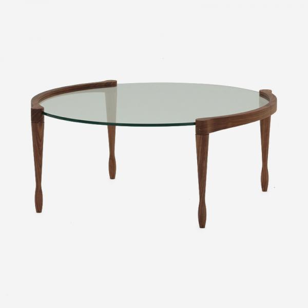 円型のガラス板を使用したテーブルです。脚のデザインが可愛いです。