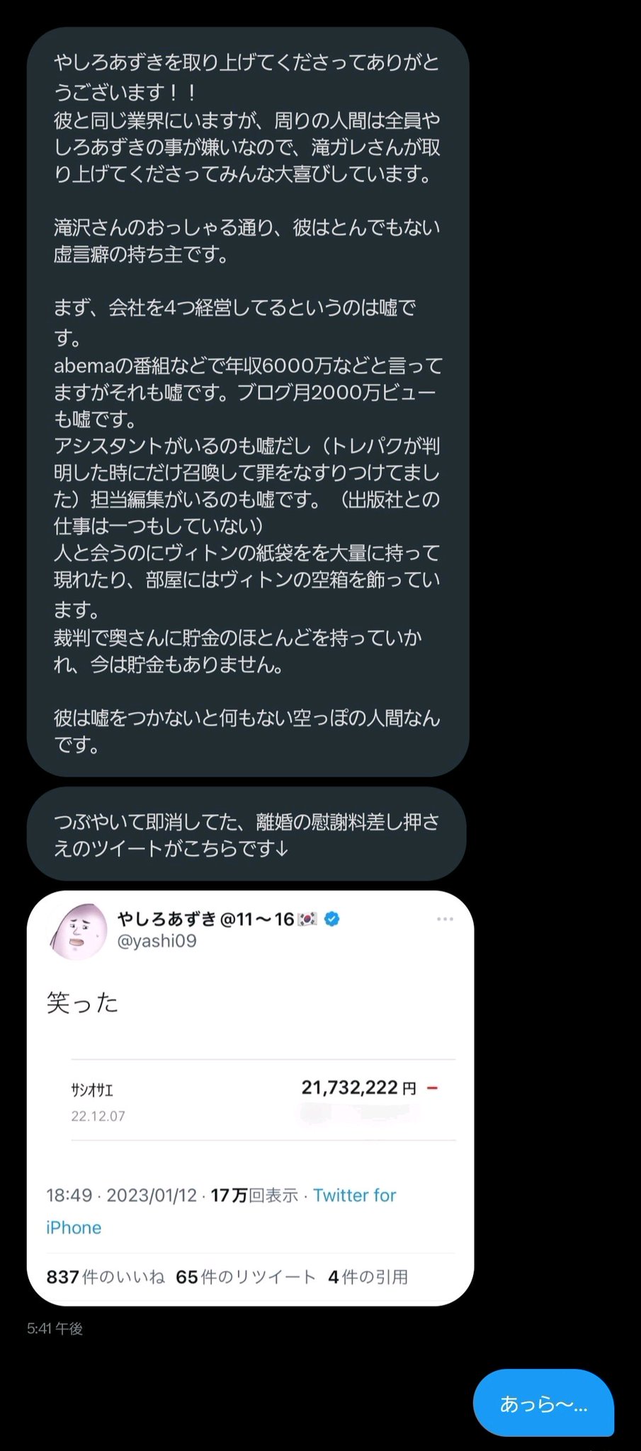 やしろあずきさんが、裏社会の人物と繋がっているともろれる文面がありますね。衝撃的すぎます・・・